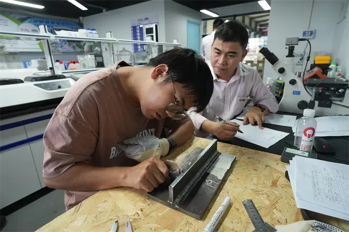 लिखित परीक्षण पेपर पर वेल्डिंग ज्ञान से लेकर वास्तविक ऑपरेशन के दौरान 45 मिनट की ऊर्ध्वाधर वेल्डिंग की "ऊर्ध्वाधर सीमा" चुनौती तक, प्रतियोगियों को अपनी मस्तिष्क शक्ति और हाथ की मांसपेशियों की स्मृति दोनों में महारत हासिल करने की आवश्यकता है। फ़ुज़ियान स्पेशल इंस्पेक्शन इंस्टीट्यूट के निदेशक चेन जियांगलान ने खुलासा किया: "स्कोरिंग करते समय, हम वेल्ड के फिश स्केल पैटर्न की एकरूपता का निरीक्षण करने के लिए एक आवर्धक ग्लास का भी उपयोग करते हैं। यह एक मानक है जो केवल उद्योग में शीर्ष प्रतियोगिताओं में उपलब्ध है।"स्टार_बॉर्डर