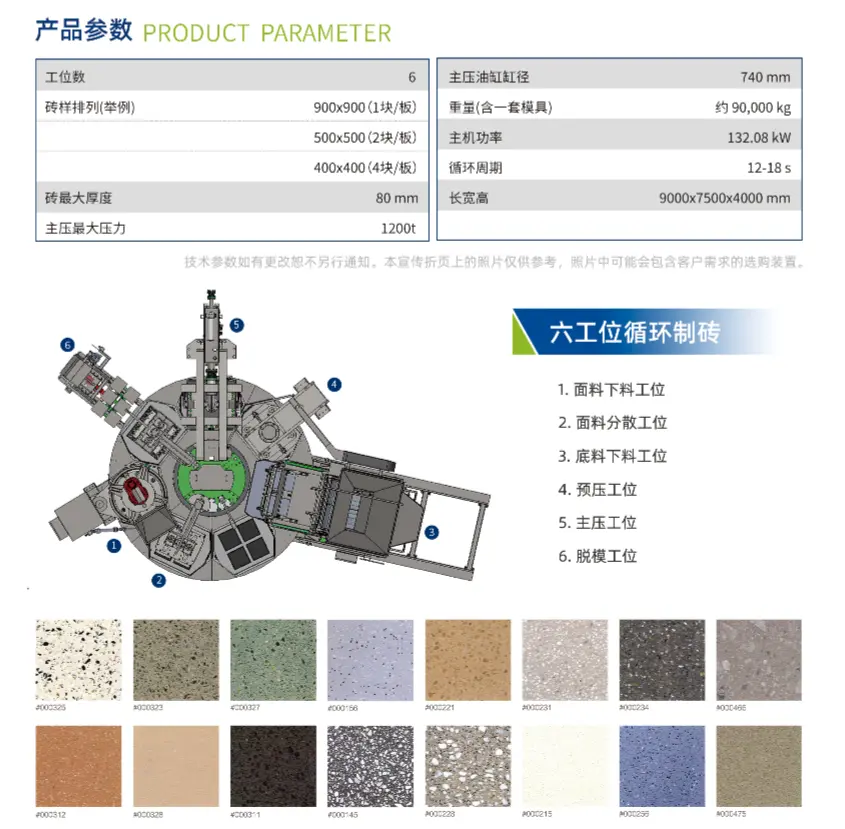 HP-1200T रोटरी टेबल स्टेटिक प्रेस रचनात्मक रूप से ईंट बनाने की प्रक्रिया को 7 स्टेशनों में विभाजित करता है, जो गोलाकार लेआउट में व्यवस्थित होता है, जिससे फर्श की जगह कम हो जाती है, और इसमें एक बड़ा मोल्डिंग क्षेत्र और मोल्डिंग ऊंचाई सीमा होती है, जिससे यह सुनिश्चित होता है कि नकली पत्थर कंक्रीट ब्लॉक उत्पादों के लिए ग्राहकों की विविध आवश्यकताएं पूरी होती हैं, जो घरेलू रोटरी सात-स्टेशन नकली पत्थर ईंट मशीनों में अंतर को भरती है। इसके तैयार समूह मानक "टी/सीसीएमए 0125-2022 रोटरी मल्टी-स्टेशन स्टेटिक प्रेस कंक्रीट ब्लॉक बनाने की मशीन" को 2023 में उद्योग और सूचना प्रौद्योगिकी मंत्रालय की 100 समूह मानक अनुप्रयोग प्रदर्शन परियोजनाओं में से एक के रूप में चुना गया है।