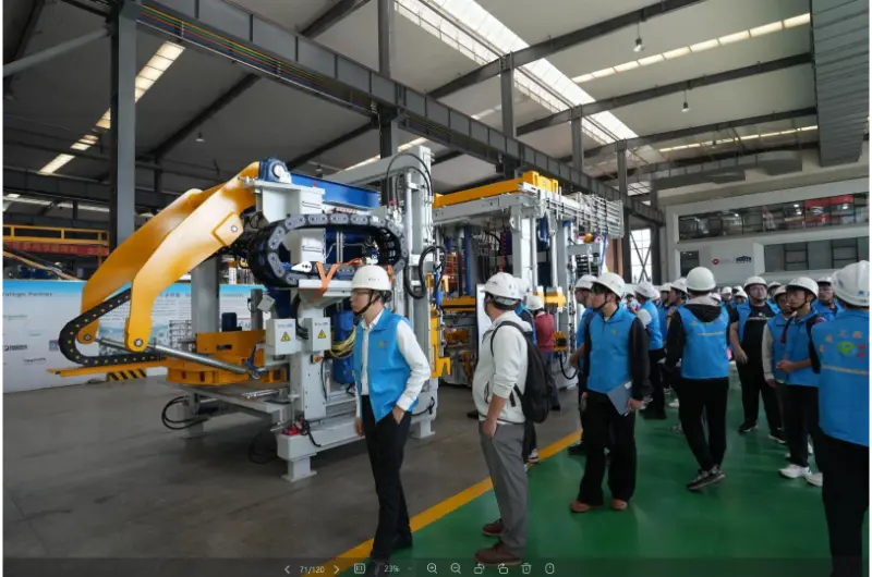 उपकरण निर्माण कार्यशाला में, आगंतुकों ने प्रयोगशाला, असेंबली कार्यशाला और डिबगिंग कार्यशाला का दौरा किया, और कच्चे माल के विश्लेषण से लेकर स्वचालित ब्लॉक-बनाने वाले उपकरणों के पूर्ण सेट तक की पूरी प्रक्रिया के बारे में सीखा। नमूना क्षेत्र में, कंपनी की ईंट बनाने वाली मशीनरी का उपयोग करके निर्मित उत्पादों के विभिन्न विनिर्देशों और अनुप्रयोगों को प्रदर्शित किया गया था, जिसमें इनडोर और आउटडोर दीवार ईंटें, आउटडोर फ़र्श ईंटें और अंकुश पत्थर, जल संरक्षण और बाढ़ नियंत्रण सामग्री, पारिस्थितिक ढलान संरक्षण और गुरुत्वाकर्षण बनाए रखने वाली दीवारें शामिल थीं। सम्मेलन कक्ष में, एक कंपनी प्रचार वीडियो दिखाया गया।