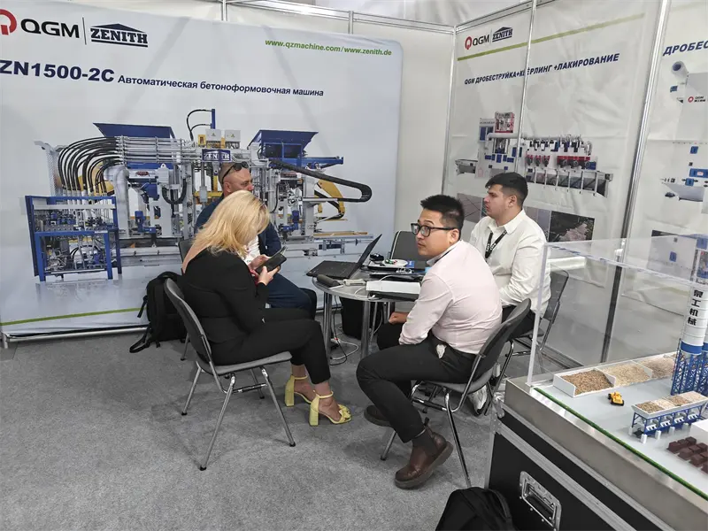 प्रदर्शनी के दौरान, रूस में क्यूजीएम की स्थानीय विपणन टीम ने बूथ पर आए उद्योग के ग्राहकों को पेशेवर उत्पाद परामर्श सेवाएं और सफल केस विश्लेषण प्रदान किया, जो कंक्रीट उद्योग में क्यूजीएम की गहरी तकनीकी ताकत और समृद्ध व्यावहारिक अनुभव का प्रदर्शन करता है। साथ ही, संपर्क प्रक्रिया के दौरान, क्यूजीएम की मार्केटिंग टीम ने ईंट बनाने वाले उद्योग के विकास, बाजार के रुझान और आने वाले उद्योग के ग्राहकों के साथ सफल अनुभव भी साझा किए।